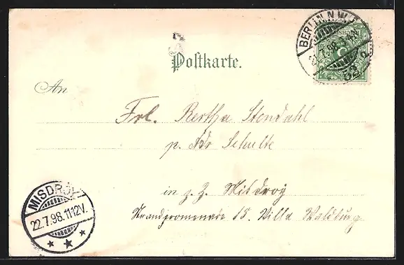 gelaufen 1898, Eckknick rechts oben, guter Zustand