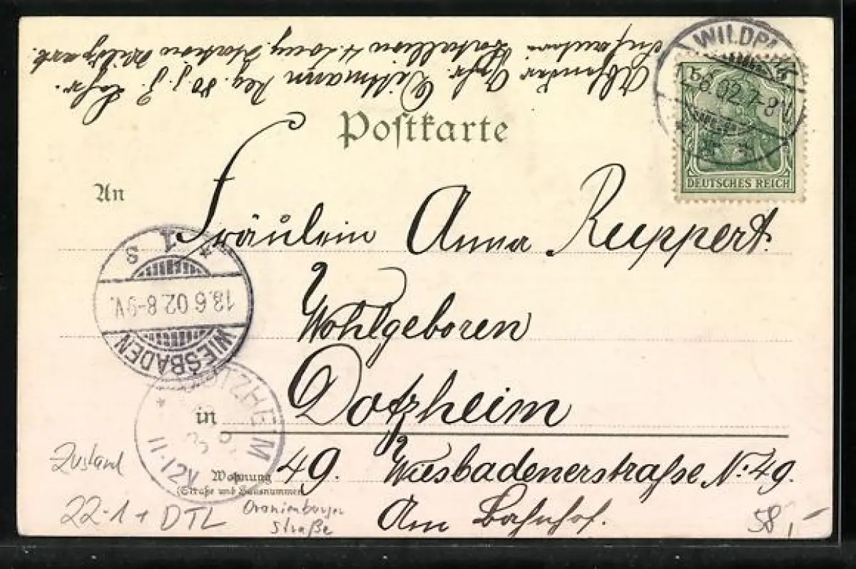 gelaufen 1902, Eckknick li. unten, guter Zustand