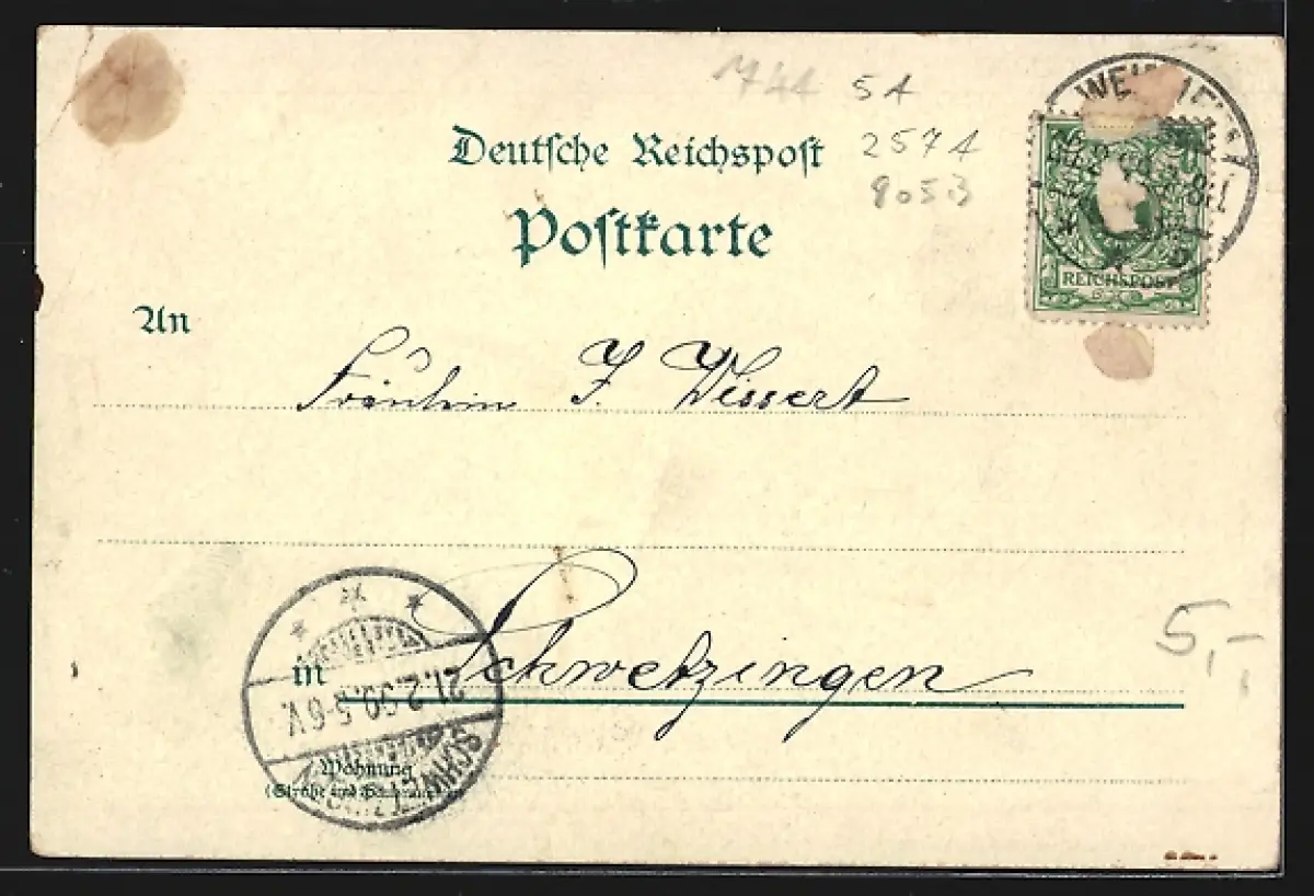gelaufen 1899, Eckknick oben rechts, guter Zustand