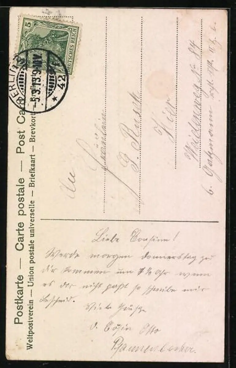 gelaufen 1913, Stempelspur, guter Zustand