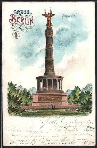 Lithographie Berlin, Vorderansicht der Siegessäule