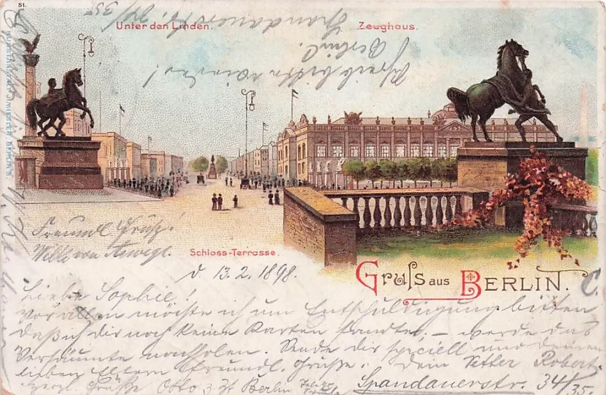 Lithographie Berlin, Zeughaus, Unter den Linden, Schloss Terrasse -795622