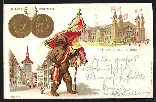 Lithographie Bern, Dr. C. Munzinger, Festhalle d. Fete Feder. de Chant 1899