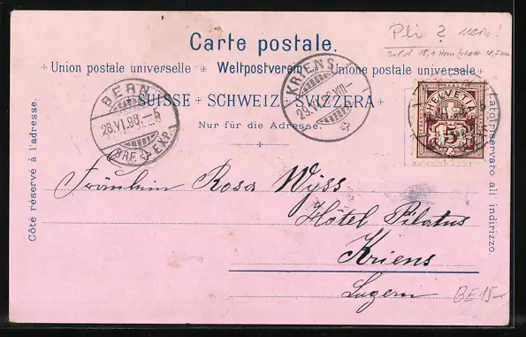 gelaufen 1898, Eckknick li. unten, guter Zustand