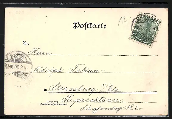 gelaufen 1900, Eckknick li. unten, guter Zustand