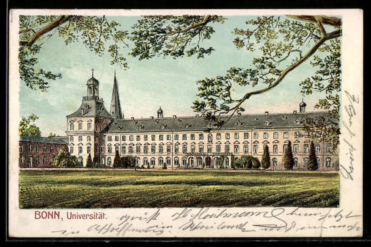 Lithographie Bonn, Universität mit Rasenfläche