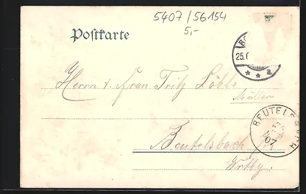 gelaufen 1907, Briefmarke entfernt, guter Zustand