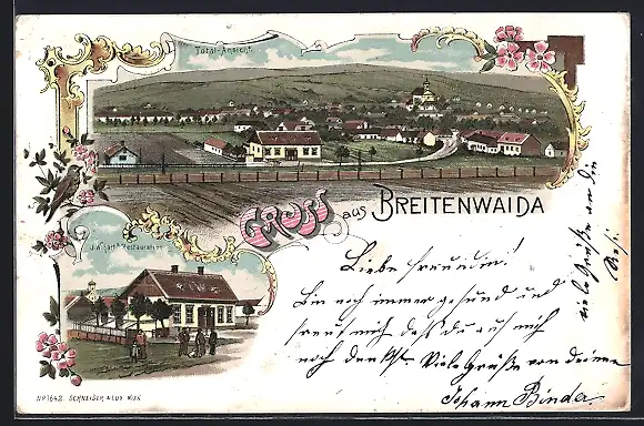 Lithographie Breitenwaida, J. Wihart`s Restaurant, Totalansicht