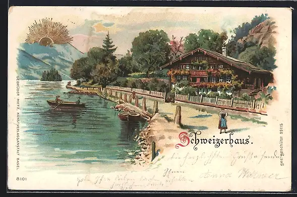 Lithographie Brienz, Schweizerhaus, Ich bin ein Schweizerknabe...