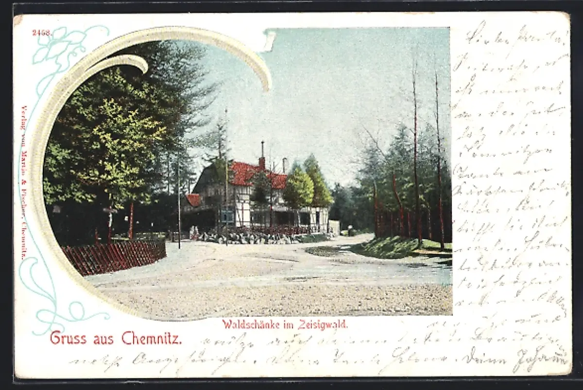 Lithographie Chemnitz, auf dem Weg zur Waldschänke im Zeisigwald