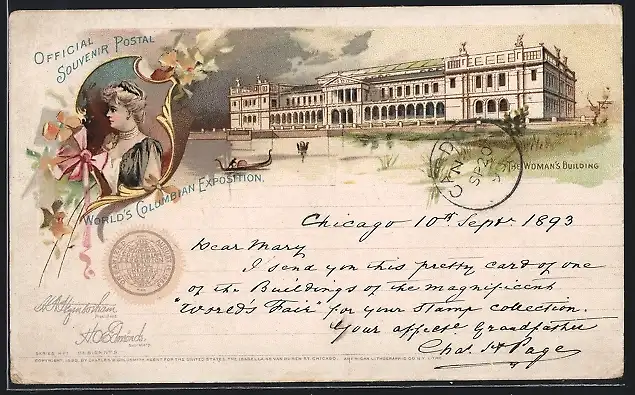 Lithographie Chicago, World`s Columbian Exposition 1893, The Woman`s Building