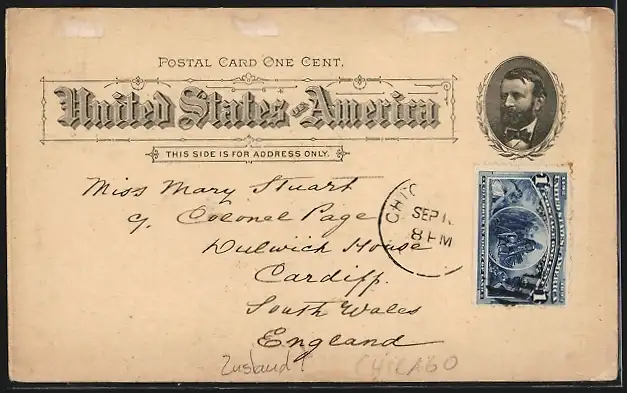 gelaufen 1893, Eckknicke li. unten und re. oben, Bugspur li. vertikal, rückseitig Klebe- und Papierreste