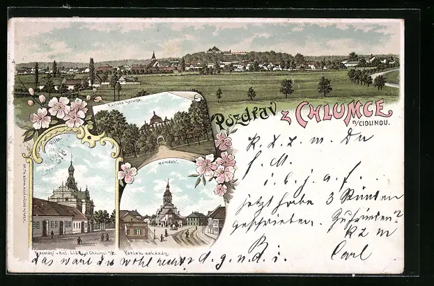 Lithographie Chlumec n. C., Karlova koruna, Vikta, Námestí, Panorama