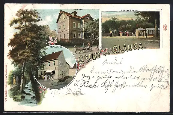 Lithographie Clausa, Restaurant, Buchenwäldchen, Logirhaus