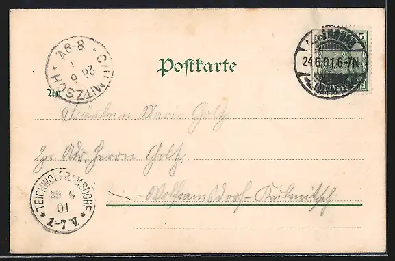 gelaufen 1901, Briefmarke entfernt, guter Zustand