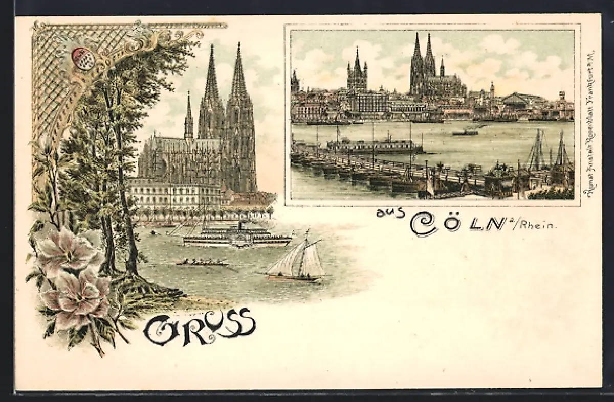 Lithographie Cöln a. Rhein, Dom, Rheinpanorama