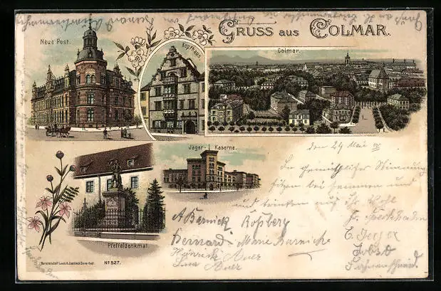 Lithographie Colmar, Neue Post, Kopfhaus, Jäger-Kaserne