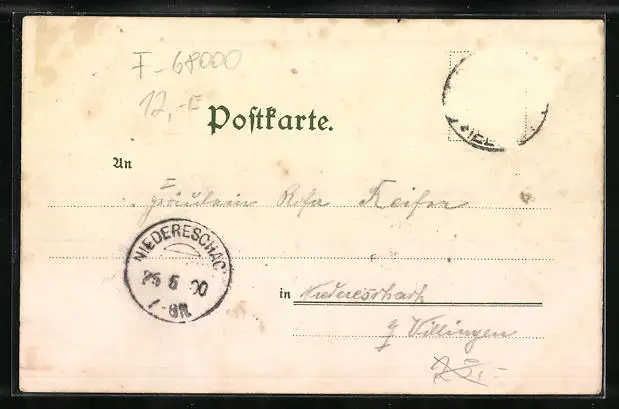 gelaufen 1900, Briefmarke entfernt, rückseitig Oberflächenschaden, guter Zustand