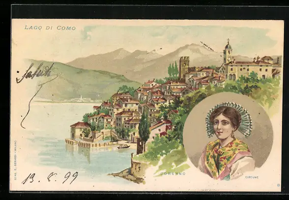 Lithographie Corenno, Costume, Panorama, Lago di Como