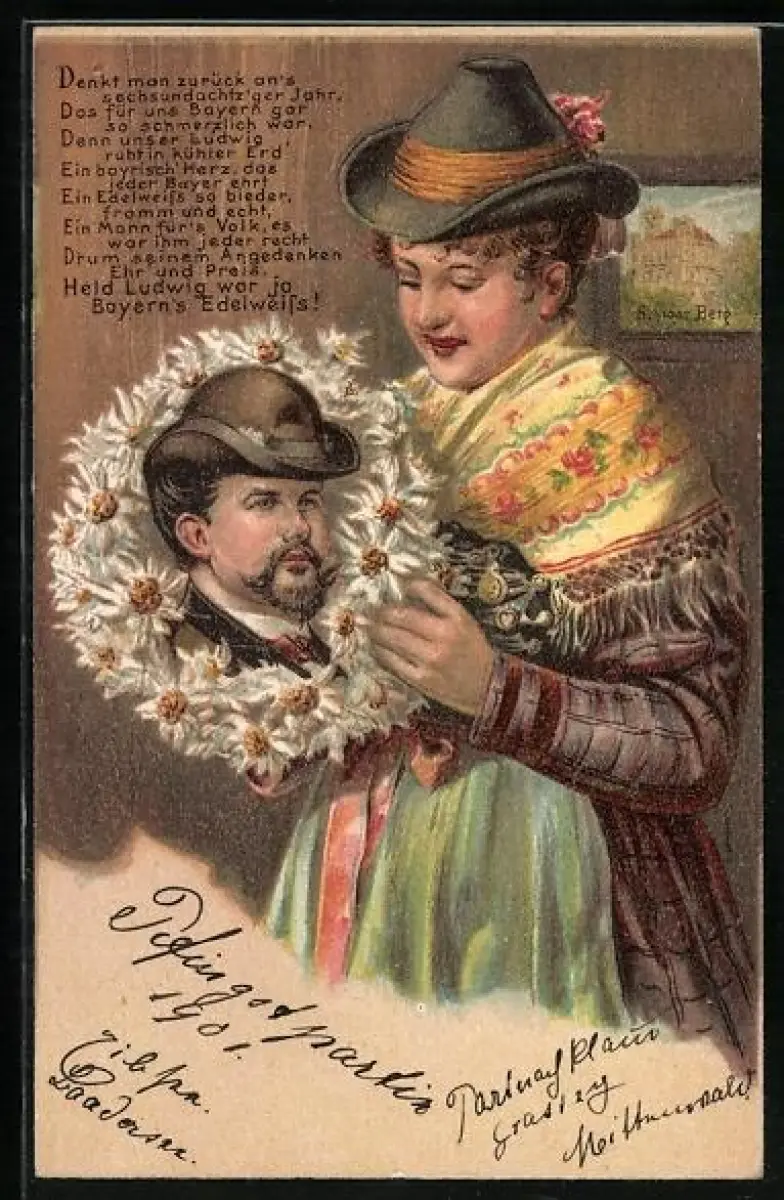 Lithographie Denkt man zurück an`s sechsundachtz`ger Jahr..., Ludwig II.