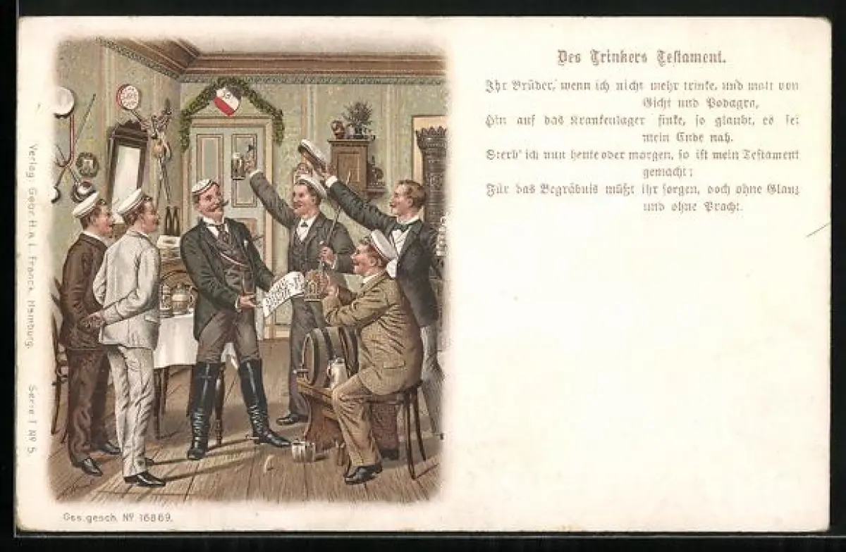 Lithographie Des Trinkers Testament, Studenten trinken Bier