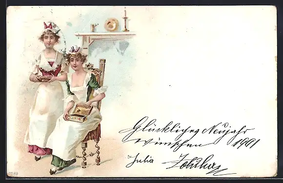 Lithographie Dienstmädchen machen eine Arbeitspause