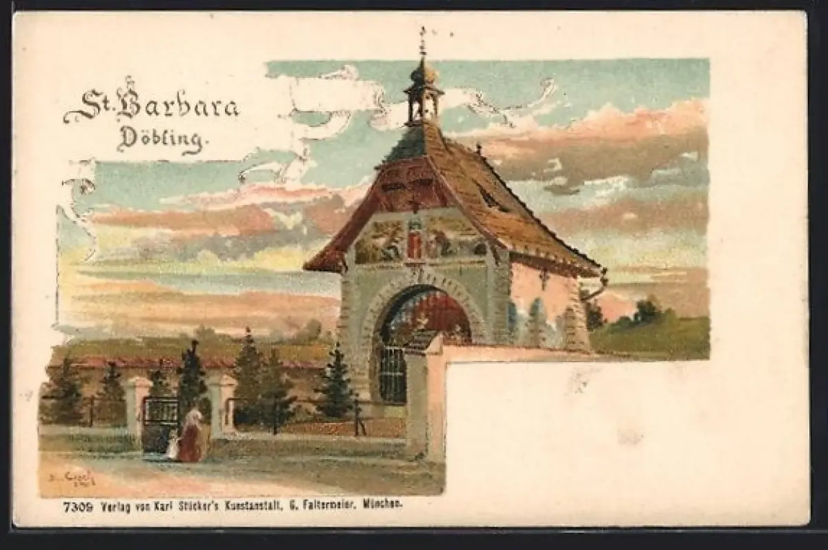 Lithographie Döbling, Kirche St. Barbara