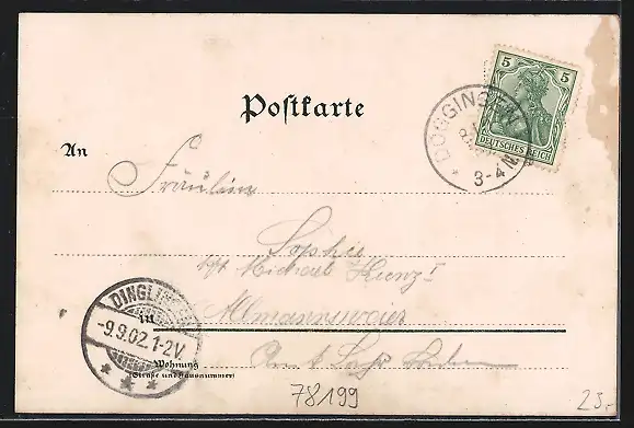 gelaufen 1902, rückseitig Oberflächenschaden, guter Zustand