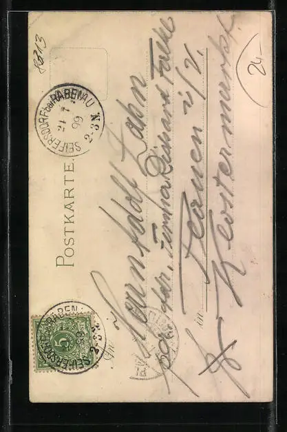 gelaufen 1899, Eckknick oben rechts, guter Zustand