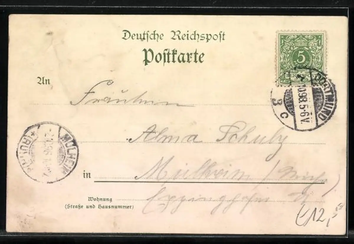 gelaufen 1898, Eckknick re. unten, Bugspur re. oben, guter Zustand