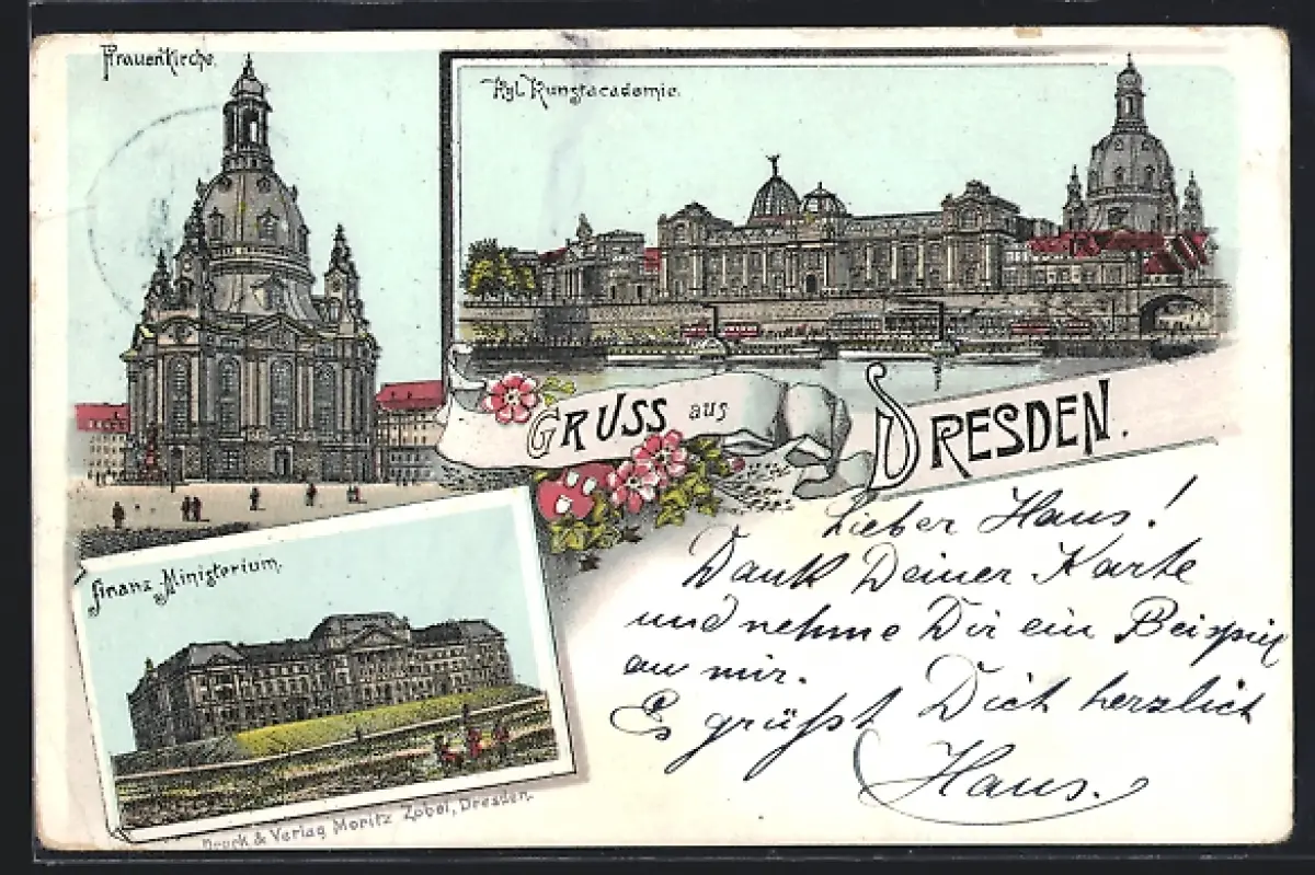 Lithographie Dresden, Frauenkirche, Finanz-Ministerium, Kgl. Kunstacademie