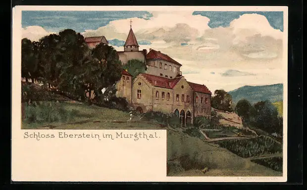 Lithographie Eberstein /Murgtal, Schloss Eberstein im Murgthal