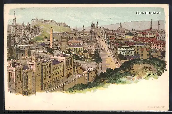 Lithographie Edinburgh, Panoramablick auf die Stadt