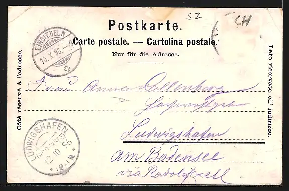 gelaufen 1896, Briefmarke entfernt, Eckknicke oben, guter Zustand