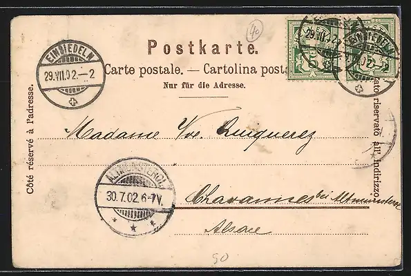 gelaufen 1902, Ecken bestoßen, guter Zustand