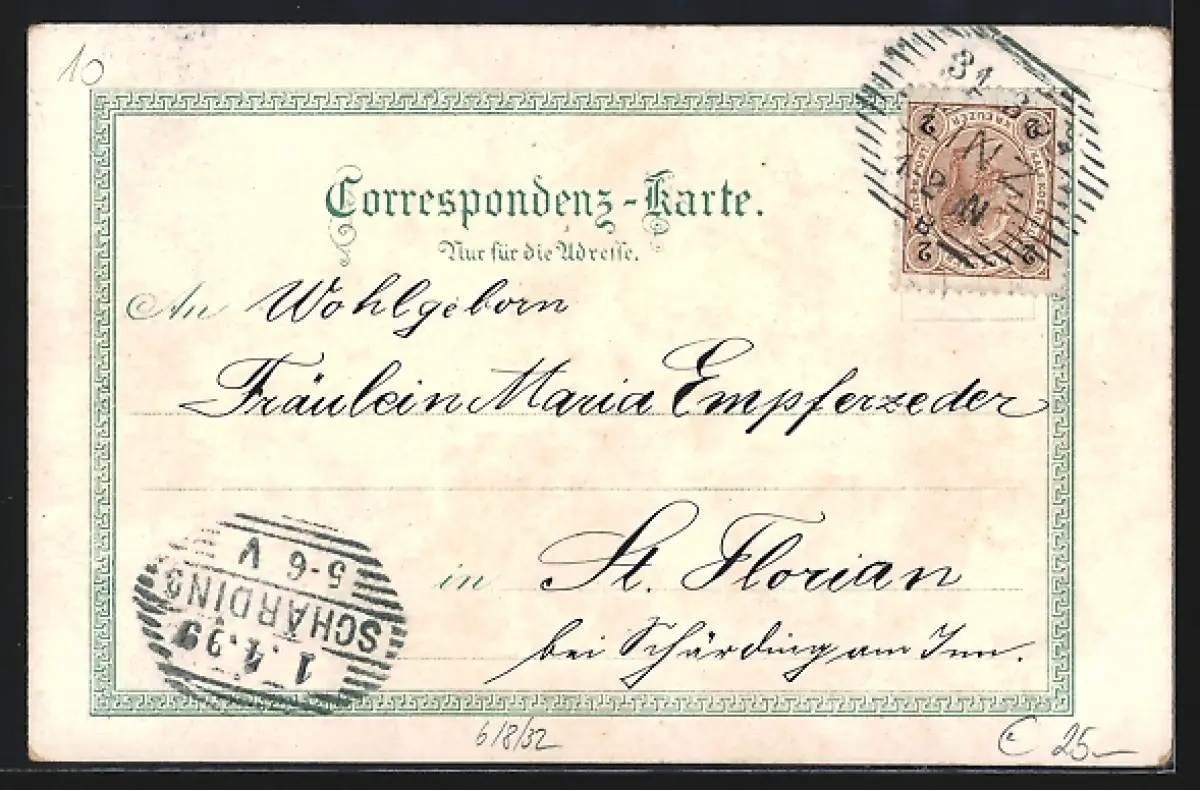 gelaufen 1899, Eckknick li. oben, guter Zustand