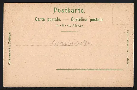 Personenbezogene Daten auf der Rückseite der Karte wurden durch blauen Textmarker unkenntlich gemacht. Die blauen Stellen sind auf die Vorderseite durchgeweicht und wirken sich negativ auf das Postkartenfoto aus