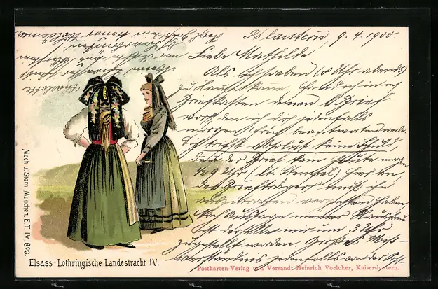Lithographie Elsass, Zwei Damen in elsass-lothringischer Tracht