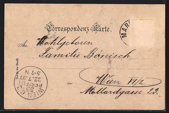 gelaufen 1897, Briefmarke entfernt, guter Zustand