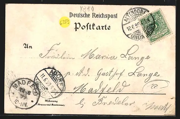 gelaufen 1899, rückseitig Klebe- und Papierreste, guter Zustand