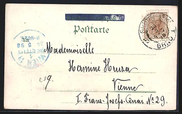 gelaufen 1898, Eckknick re. oben, guter Zustand