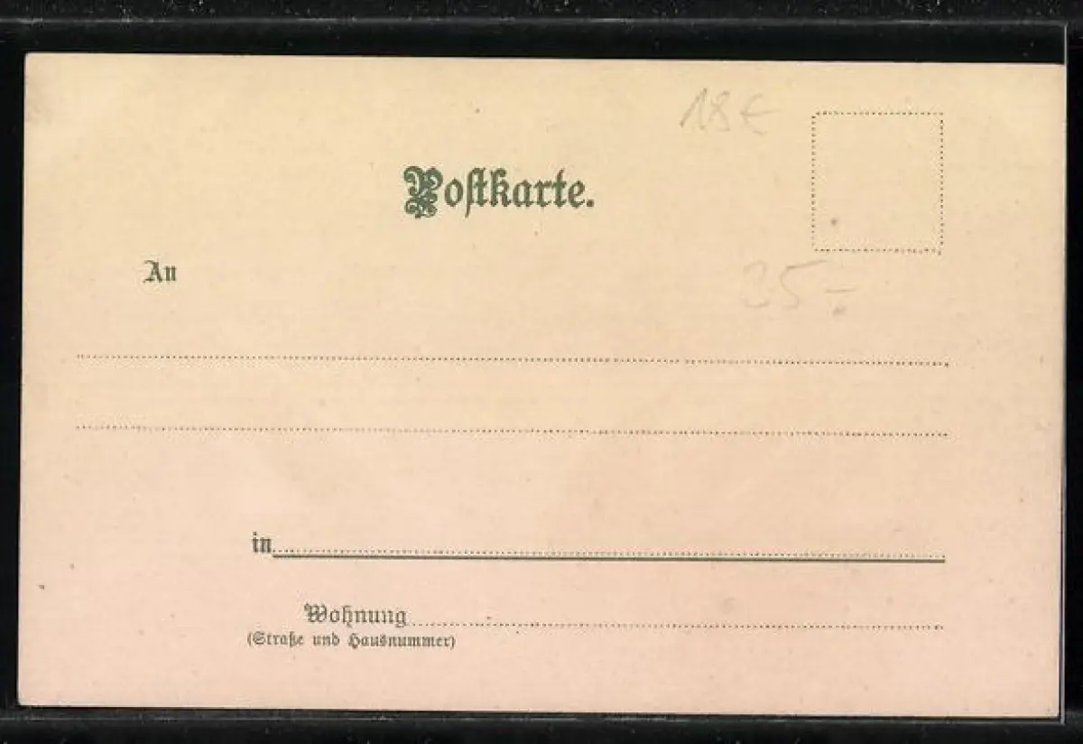 Personenbezogene Daten auf der Rückseite der Karte wurden durch blauen Textmarker unkenntlich gemacht. Die blauen Stellen sind auf die Vorderseite durchgeweicht und wirken sich negativ auf das Postkartenfoto aus