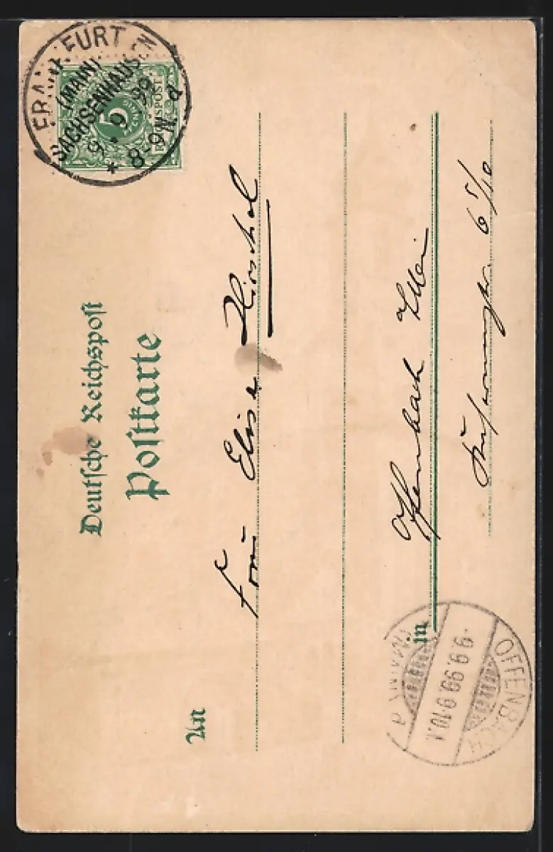 gelaufen 1899, Eckknick links oben, Bugspur untere Kante, sonst guter Zustand