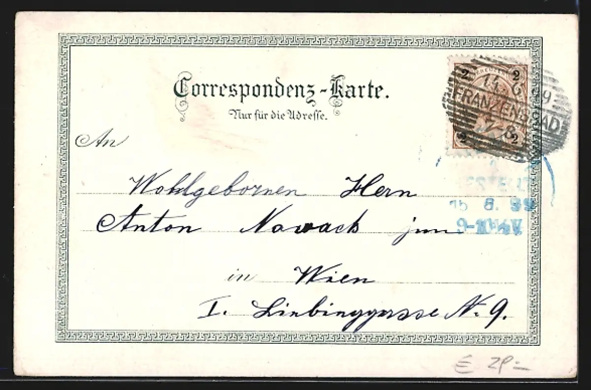 Lithographie Franzensbad, Kulmerstrasse, Parkstrasse, Morgenzeile, Ferdinand- u. Karlstrasse
