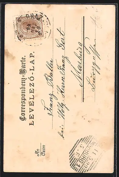 Personenbezogene Daten auf der Rückseite der Karte wurden durch blauen Textmarker unkenntlich gemacht. Die blauen Stellen sind auf die Vorderseite durchgeweicht und wirken sich negativ auf das Postkartenfoto aus