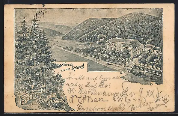 Lithographie Freiburg-Günthersthal / Breisgau, Gasthaus Kyburg