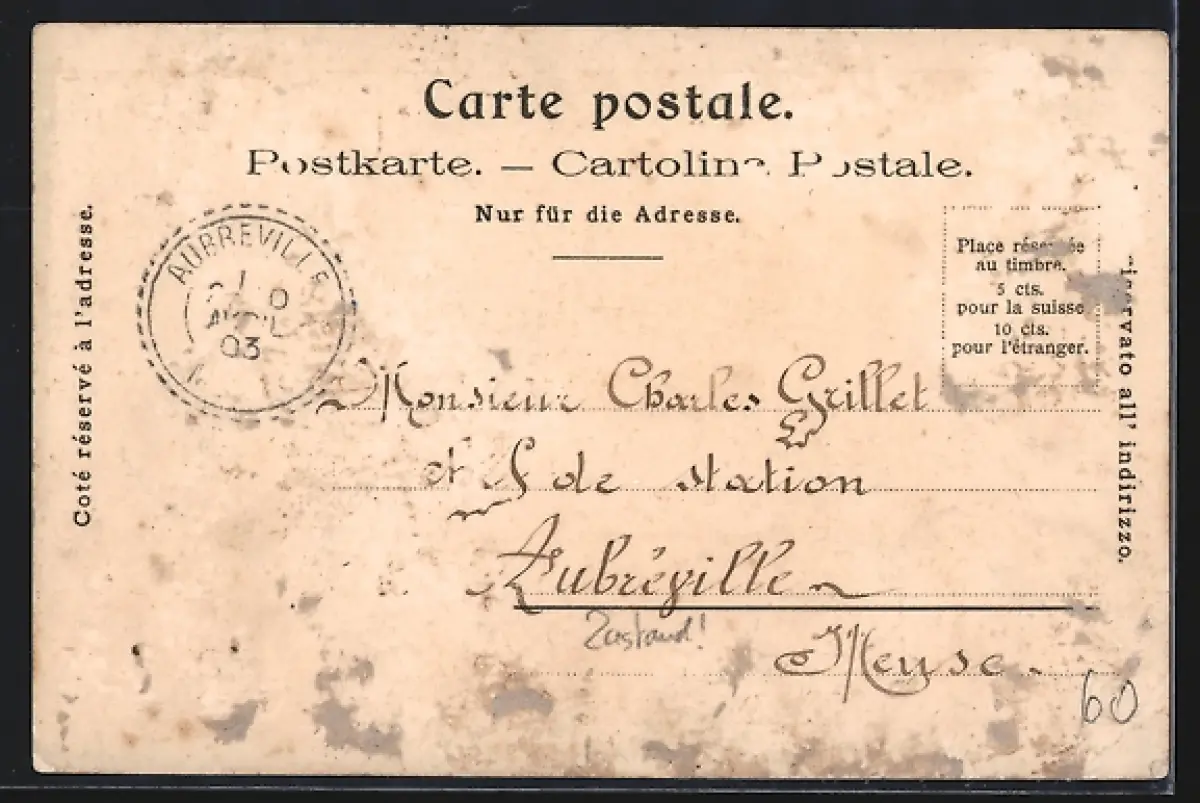 gelaufen 1903, rückseitig Oberflächenschaden, guter Zustand