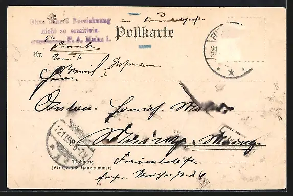 gelaufen 1898, Briefmarke entfernt, rückseitig Oberflächenschaden, guter Zustand
