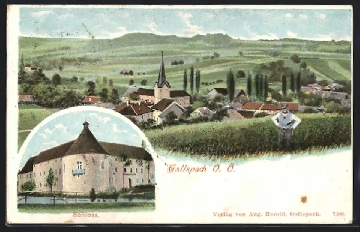 Lithographie Gallspach, Schloss, Stadtpanorama