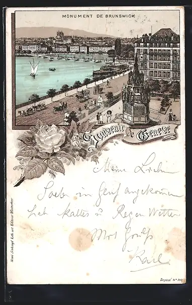 Lithographie Geneve, Monument de Brunswick